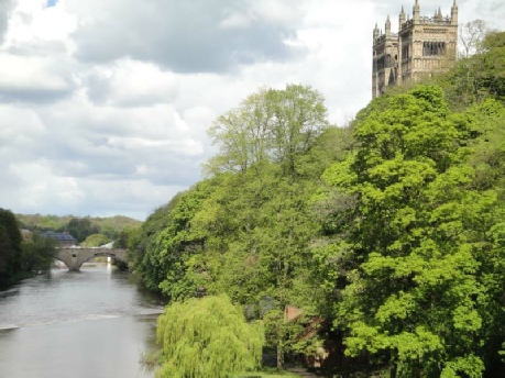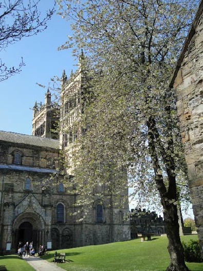 On Friday we headed further north stopping off at Whitby in the excellent car park on the quayside next to the Co-op. It’s a lovely time but the weather was not conducive to a long stay. Moving on, we stopped again at Guisborough and visited the priory. By now the sun was shining. Later we arrived at The Grange CC site in Durham where we were staying for two nights. After pitching we went for a rather muddy walk down to the river.