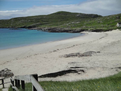 The day proved rather frustrating since we wanted to tour Harris but had to arrive back at the site by 2.30 pm to move the 'van. As a result we only had time to complete a third of our day's plan. However, what we saw was beautiful.We set off down the west coast then retraced our steps to visit a coastal region west of Tarbert which proved a magnificent drive high on the cliffs hugging the coastline culminating a a lovely bay where Max was allowed a quick walk prior to the drive back to the site.