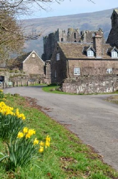This is a must visit and proved as attractive as always in the spring sunshine. Following photographs of Max with daffodils in the background, we set off again higher up the valley side to the top at Hay Bluff prior to dropping down again to Hay where we enjoyed looking around the shops for an hour or so.