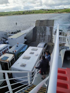 Left Dunnett Head site to catch 9.30 am ferry for Orkney. Had to reverse on to the ferry which was an interesting challenge though successfully accomplished.
