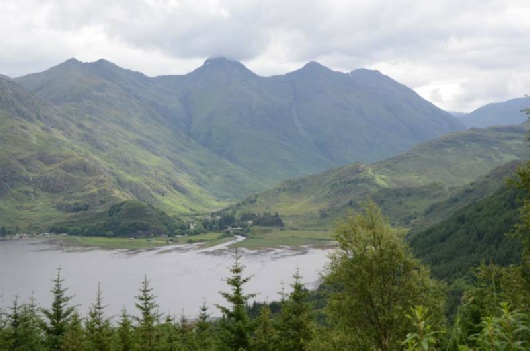 We left the site in cloud and drizzle and were glad to be on our way as the midge had descended the previous evening. A lovely journey mainly on B roads with passing places, we arrived at Morvich in sunshine. After setting up, the fridge problem recurred. This time a call to the dealers where we had purchased the van identified the problem as being with the fridge light and once this was disconnected the problem miraculously disappeared. We left the site for a walk up the hills with Max and later followed this with a stroll up to the war memorial where we met a lady with her collie. She assured us that Max would calm down in time!