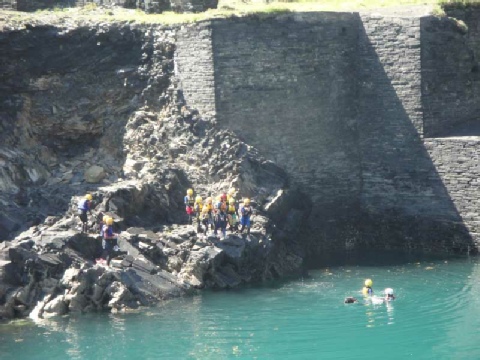 In the afternoon we went north of St David's and found the beach from which our eldest granddaughter, Jess, and her father go coast steering when holidaying in the area. There were a party of children enjoying the activity in the "Blue Lagoon" - all looked a bit hazardous to Jan and me.