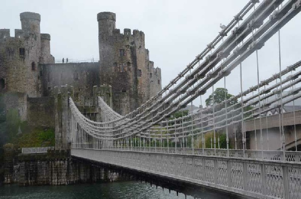 A wet day was forecast for Monday though the day opened dry and we decided to go to Llandudno which proved an excellent choice. We took the toll road around the Great Orme in dull but still dry weather and were surprised to find that the road circumnavigated the promontory with places to stop along the way. The summit centre proved a good place to give Max a walk fortunately still in the dry but the rain came whilst having our lunch. On the way back we visited Conway in the pouring rain but nevertheless parked and visited Telford’s famous suspension bridge.