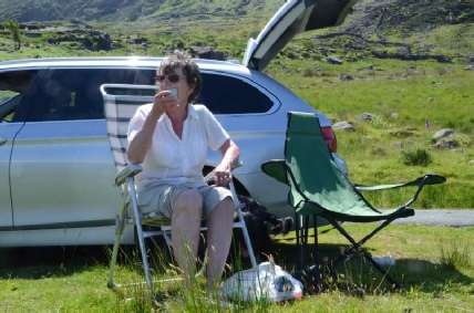 The following day proved equally bright and we decided to visit Barmouth. The town was too commercialized for us so after collecting groceries we headed back to the ‘van and another look at the map. After some deliberation we headed off into the hills on mountain roads. We had a glorious afternoon in brilliant sunshine having a picnic lunch and taking in the scenery. So much better than travelling and only about six miles from the site.